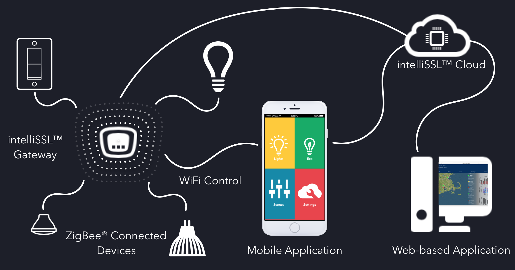 intelliSSL™ is TSR’s highly robust, scalable and configurable end-to-end lighting system solution enabled by the Internet of Things (IoT). Built upon a rock-solid, multi-protocol LAN mesh network, intelliSSL enables cloud (and local) control with best-in-class reliability. What’s more, intelliSSL can be configured to meet an application's specific needs, with highly configurable graphical user interfaces, multi-user and multi-site capabilities and a mobile application built for intuitive control of core lighting system functionality.